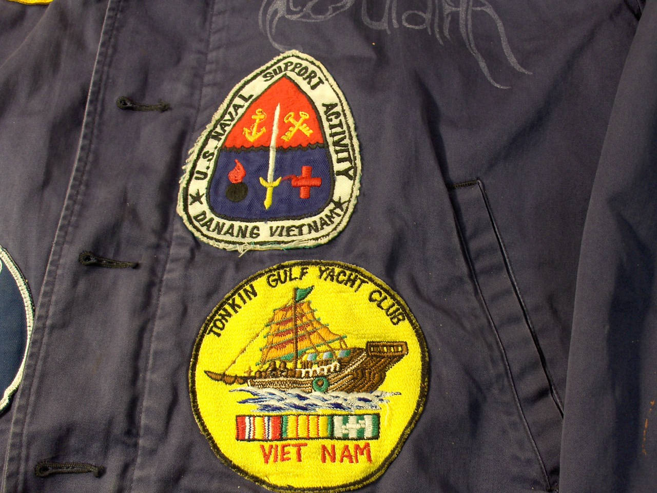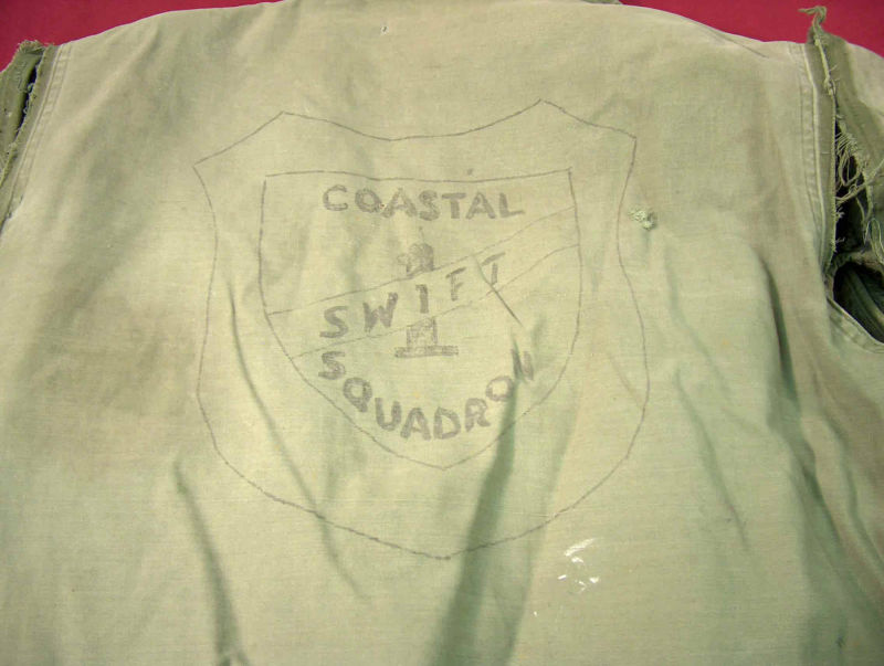 I had to have this Jacket , shows real wear and war time condition , rare insignia , this is an original US Navy jacket , the Sea Floats were made of barges in the rivers of south Vietnam, they were command center’s on the rivers and would support villages against attacks by the Viet Cong , the PBRs would tie up to them and Helicopters would land on them . there were also combat teams stationed near buy on land.