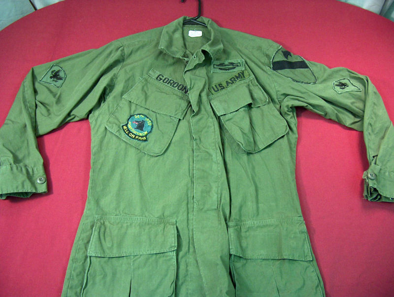 US Army, Named Jungle Jacket – poplin – First Air Cav. Dog Handler, 34th IPSD. INFANTRY PLATOON SCOUT DOG – POINT FOR THE CAV. HELL ON PAWS. Combat infantry badge. Does not get much better than this