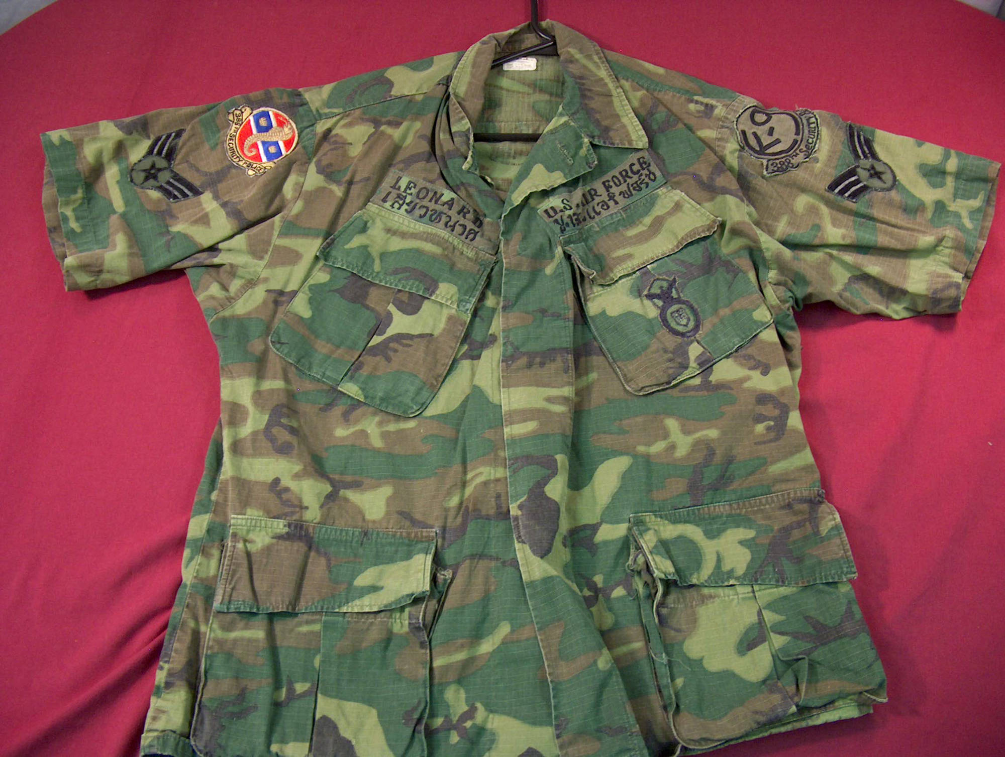 USAF Dog handler erdl ripstop coat , name tapes in English and Thai . 388th security squadron K-9 - Named Leonard – 388th security police patch on combat sleeve . nice