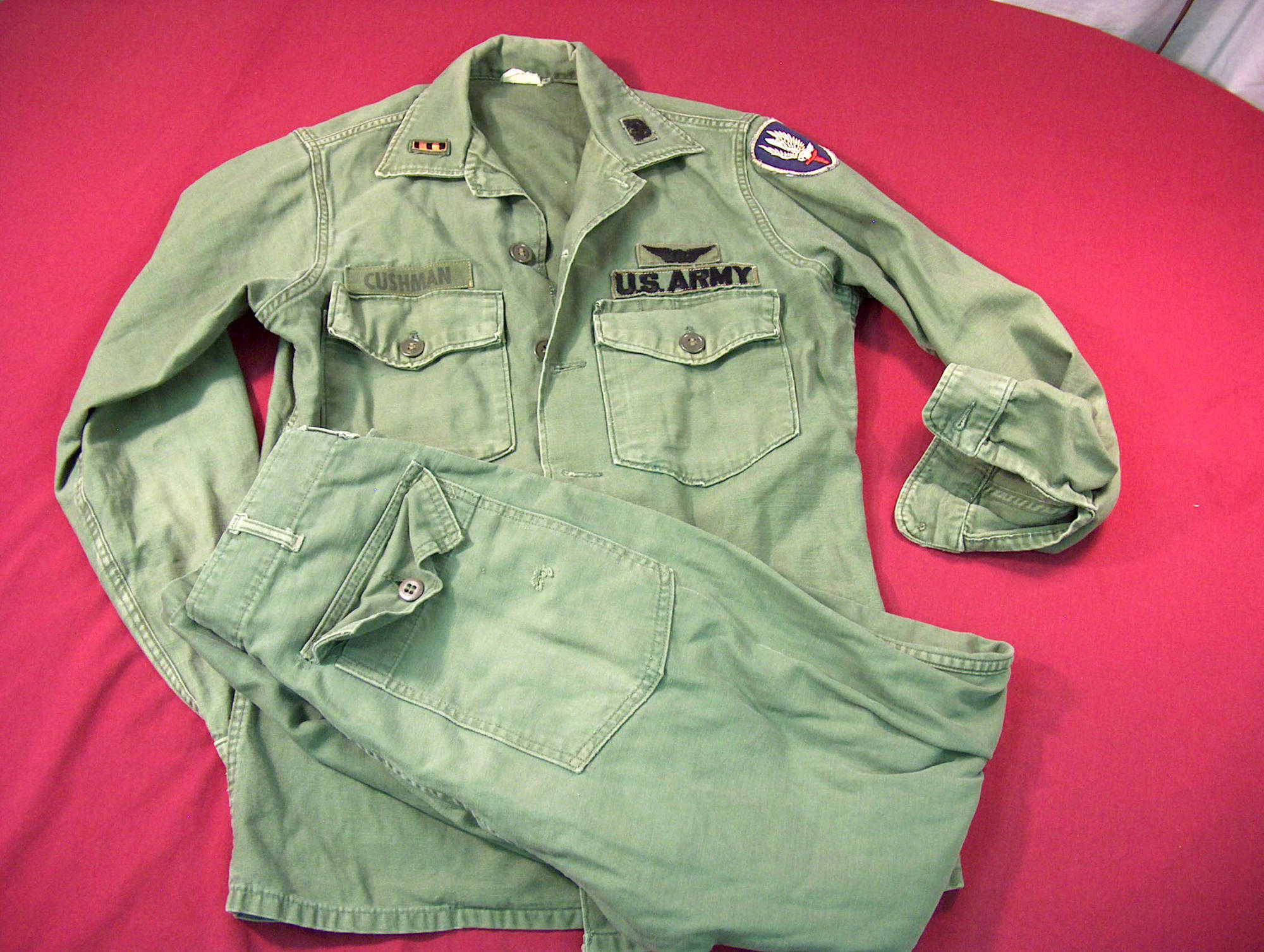 tailor made special forces BDU uniform is unissued and in like new condition, as brought back, made to wear out side the pants ,a very rare find , used by early sf advisors and phoenix group